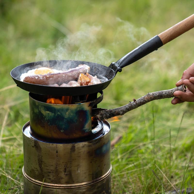 Liten stekpanna 21 cm från Hällmark. Den lilla och flexibla jaktpannan med ihopfällbart trähandtag gör den lätt att ha med sig i ryggsäcken. Trähandtaget ger säker hantering, oavsett om det är över en gaslåga eller över öppen eld. Pannan i varmvalsat stål levereras fabrikssmord. En trogen vän och uppskattad present till jägare, fiskare och friluftsentusiaster. Hällmark of Sweden har sitt ursprung och varumärke från det svenska land och fjäll.
