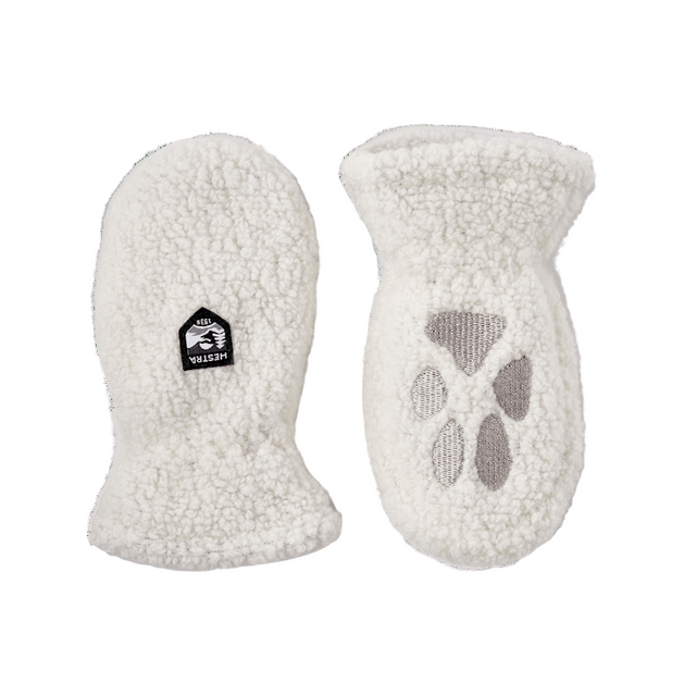 Sötaste barnvanten är sydd i lurvig teddyfleece och har ett broderat tassavtryck i handflatan. Paw Mitt är inspirerad av skogens djur – och här är det en räv som gör vacker tass. Ett invändigt foder i mikrofleece håller små fingrar varma under kyliga vinterdagar. Notera: storlek 0 saknar tumme.