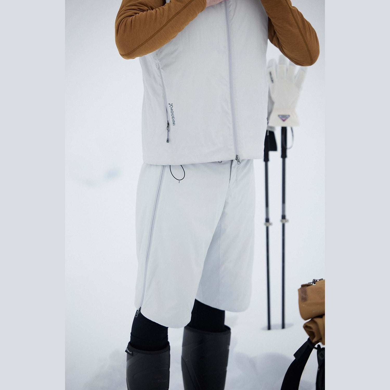Tekniska isoleringsplagg är ett signum för Houdini – så kallade punktmarkerande plagg. M's Dunfri Shorts är konstruerade med ett dubbelt syfte. Fullängdsdragkedjorna och det slitstarka yttermaterialet gör dem perfekta att bära utanpå dina byxor för extra värme under toppturer eller klättring. Samtidigt är materialen mjuka och smidiga nog att fungera utmärkt under skalbyxor under riktigt kalla dagar i skidbacken.