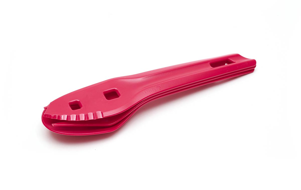 Bestickset från Wildo med kniv, gaffel och sked. Besticken kan enkelt kopplas ihop i och tar minimal plats i packningen.