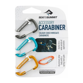 Karbinhackarna har vajergrind i stål och kommer i tre färger. Lika praktiska för att fästa grejer på väskan som att ha i nyckelringen eller på ficklampan. Fungerar också bra som snabbfäste för linor på tarpen.
