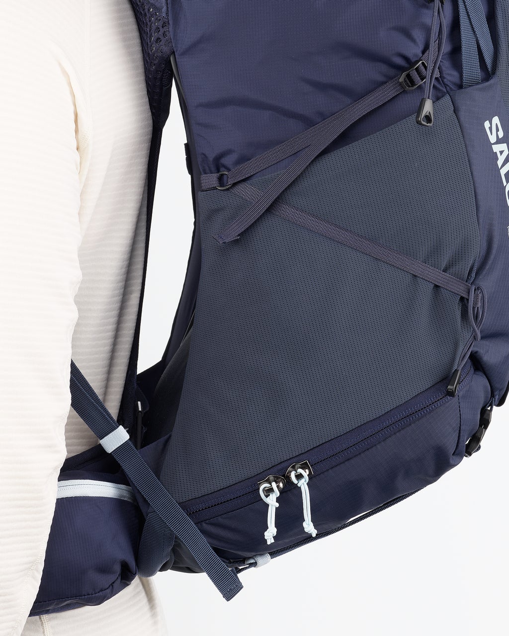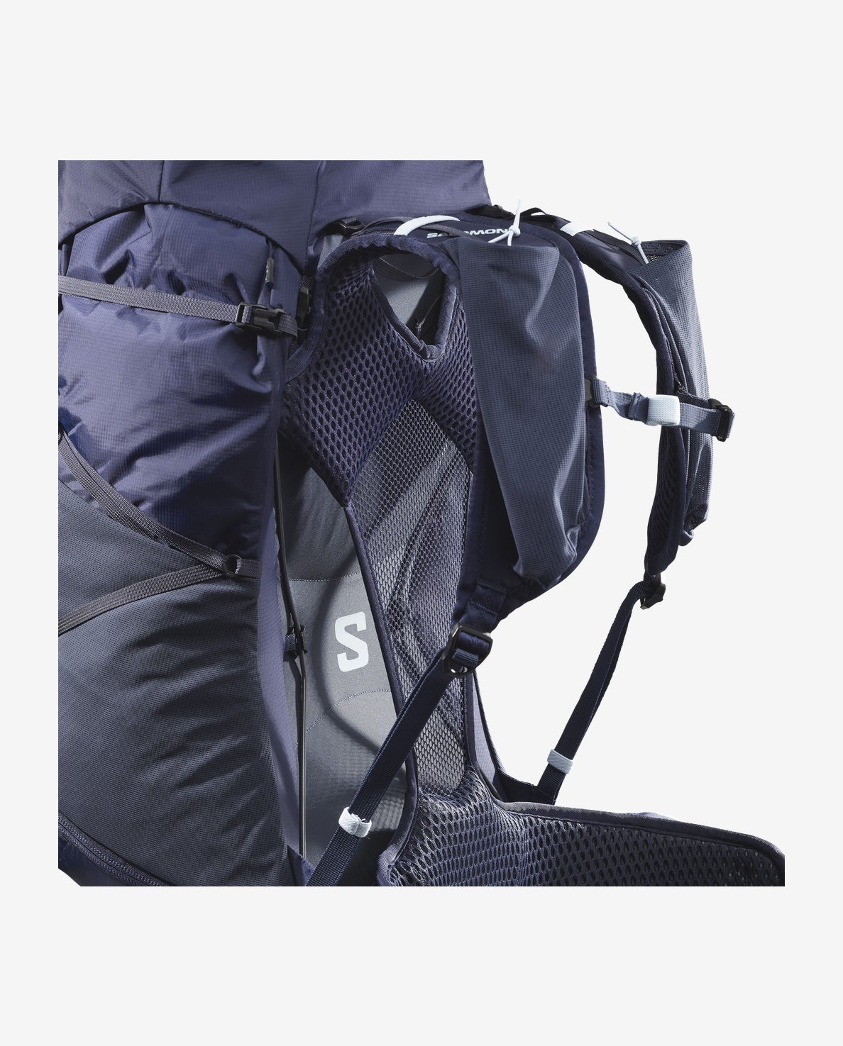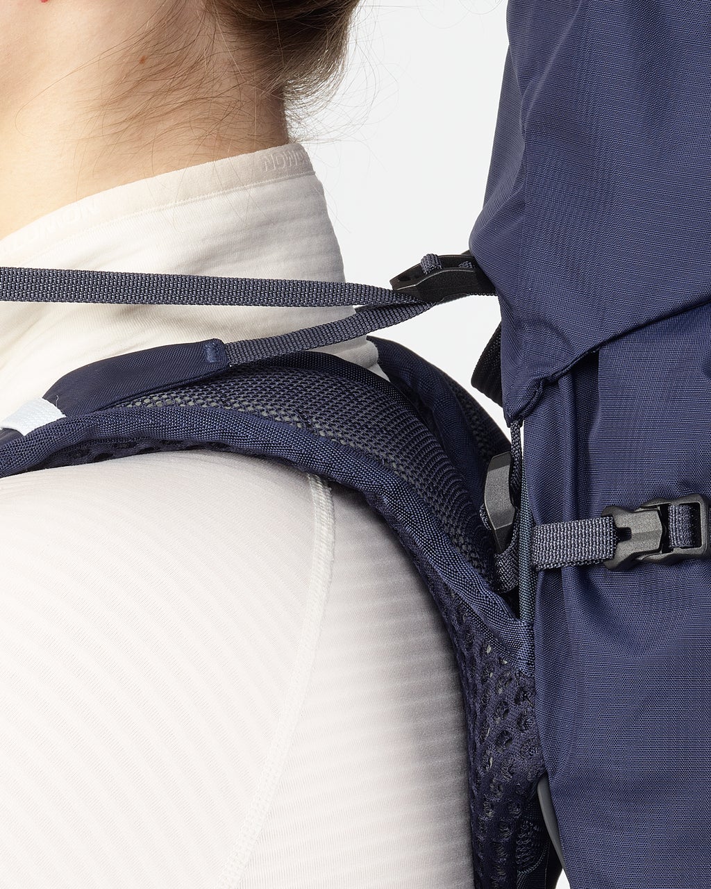 - Upphängd ryggpanel: Ryggsystemet är baserat på en upphängd struktur med endast ett lager av lätt mesh som vidrör ryggen för att låta luften flöda för förbättrad andningsförmåga.