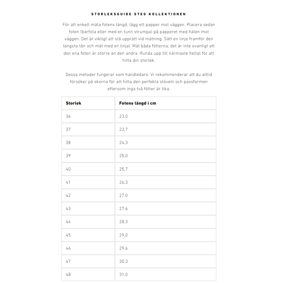 På grund av lästen ergonomiska passform som följer foten kan skon upplevas något stor. Kontrollera gärna storlekstabellen innan köp.