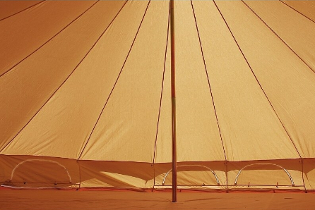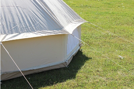 Rejäl canvas tältväv med anti-mögelbehandling och impregnering för att motstå väta.