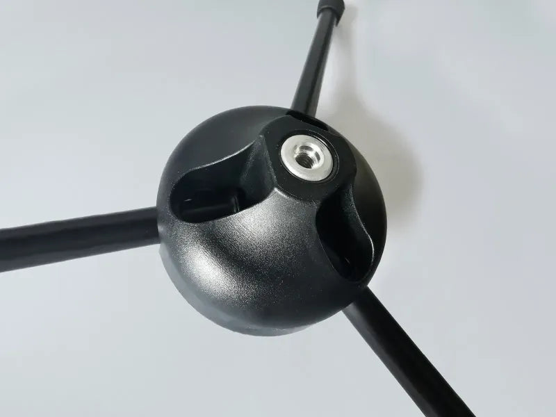 Gummiparkettkuddarna säkerställer ett halkfritt stativ. På grund av de hopfällbara fötterna kan stativet demonteras kompakt och tar väldigt lite plats i ryggsäcken.