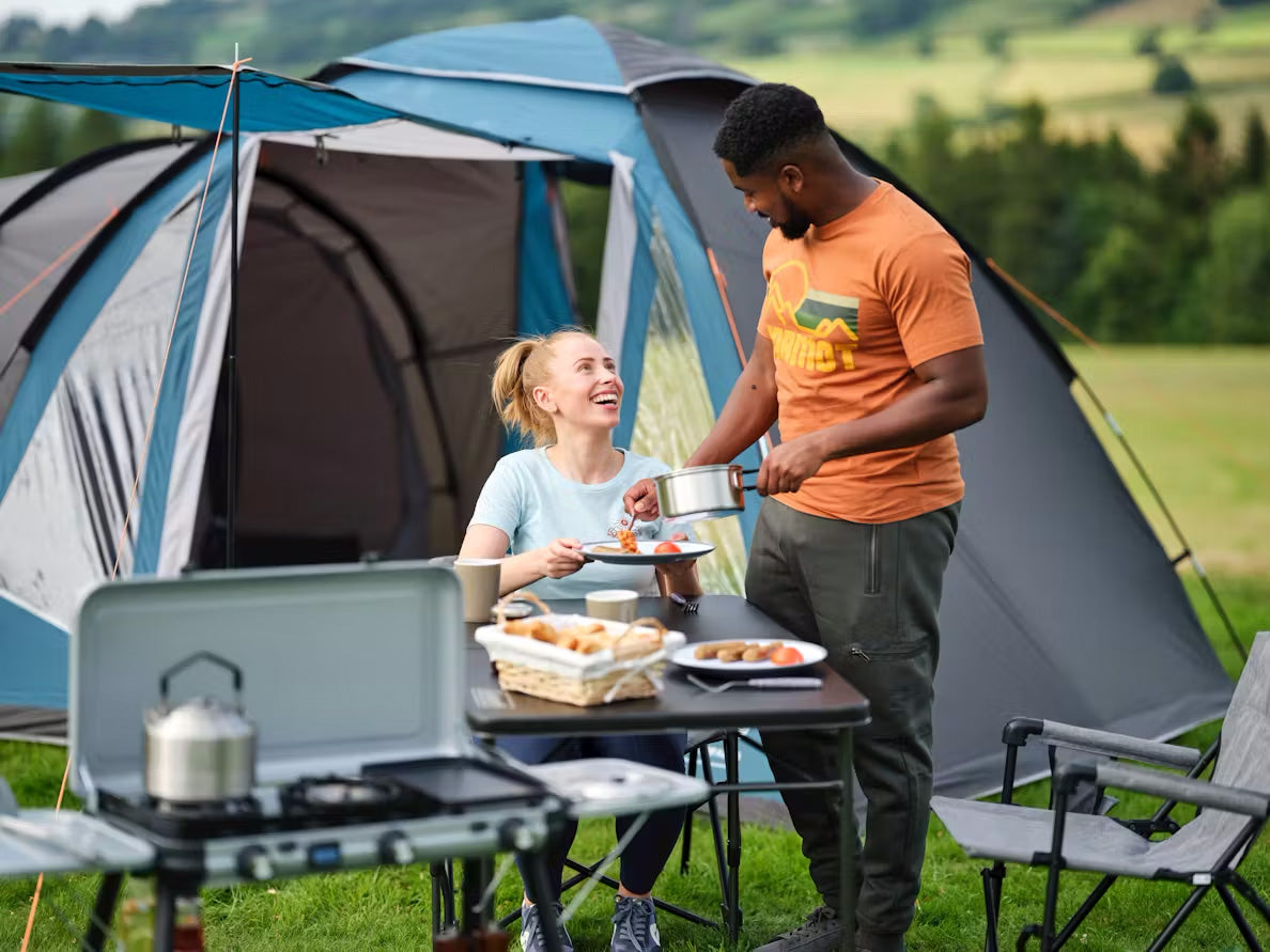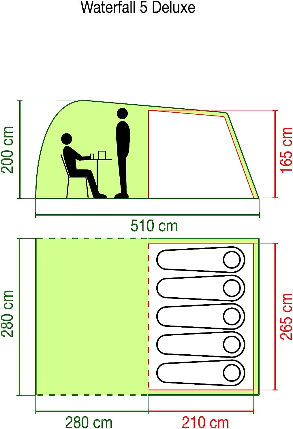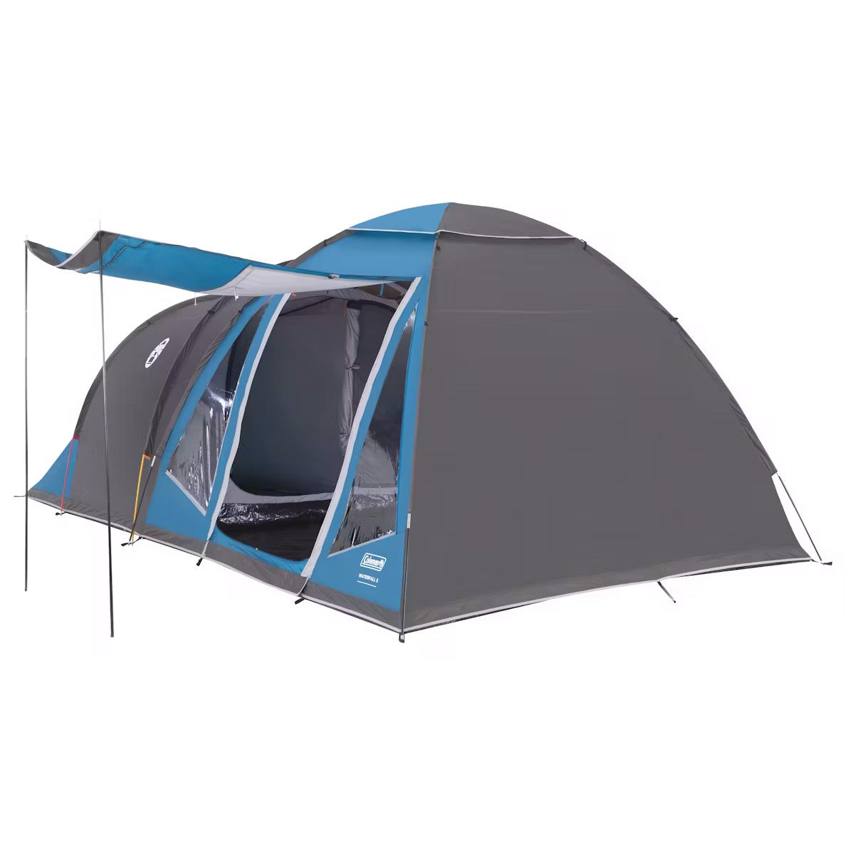 Waterfall 5 erbjuder familjecampare det bästa av två världar och har en smart hybriddesign som kombinerar fördelarna med tunneltält och kupoltält. Vardagsrumsdelen med kupolform är tillräckligt stor för hela familjen och ger bra huvudhöjd överallt medan de delade sovrummen erbjuder ökad komfort och avskildhet för upp till 5 personer. Avdelaren i sovrummet kan tas bort för att få ett extra stort sovrum istället för två. Med 2 extra stolpar (medföljer) kan verandan användas för extra förvaring.