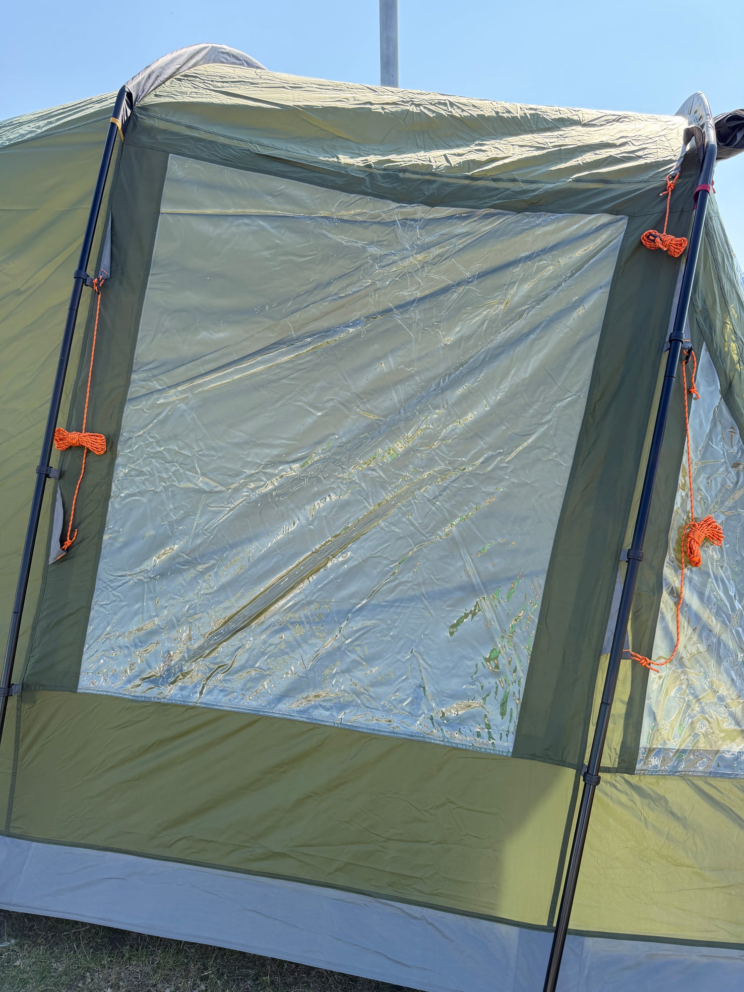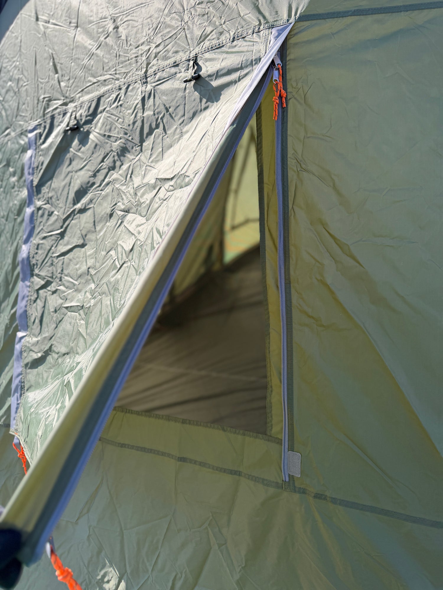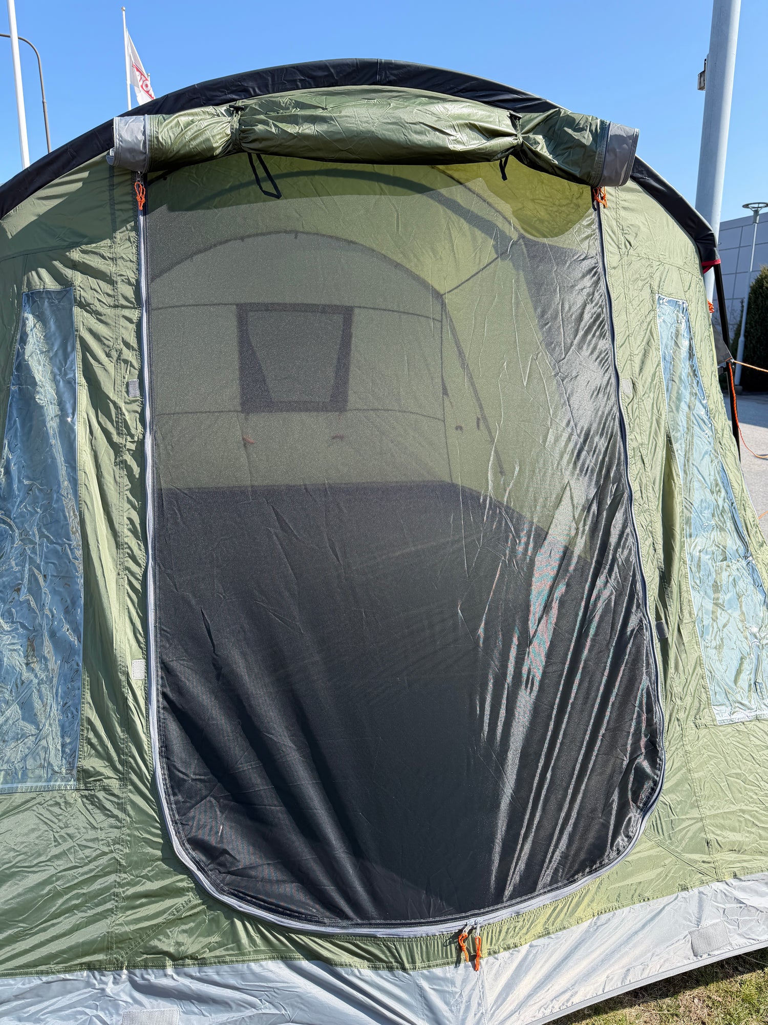 I allrummet finns smarta förvaringsfickor samt upphängningskrokar – två i allrummet och två i sovdelen – vilket gör det enkelt att organisera belysning och utrustning. De flera fönstren släpper in rikligt med ljus och bidrar till en trivsam atmosfär, perfekt för regniga dagar när du vill umgås, spela spel eller äta tillsammans inomhus.