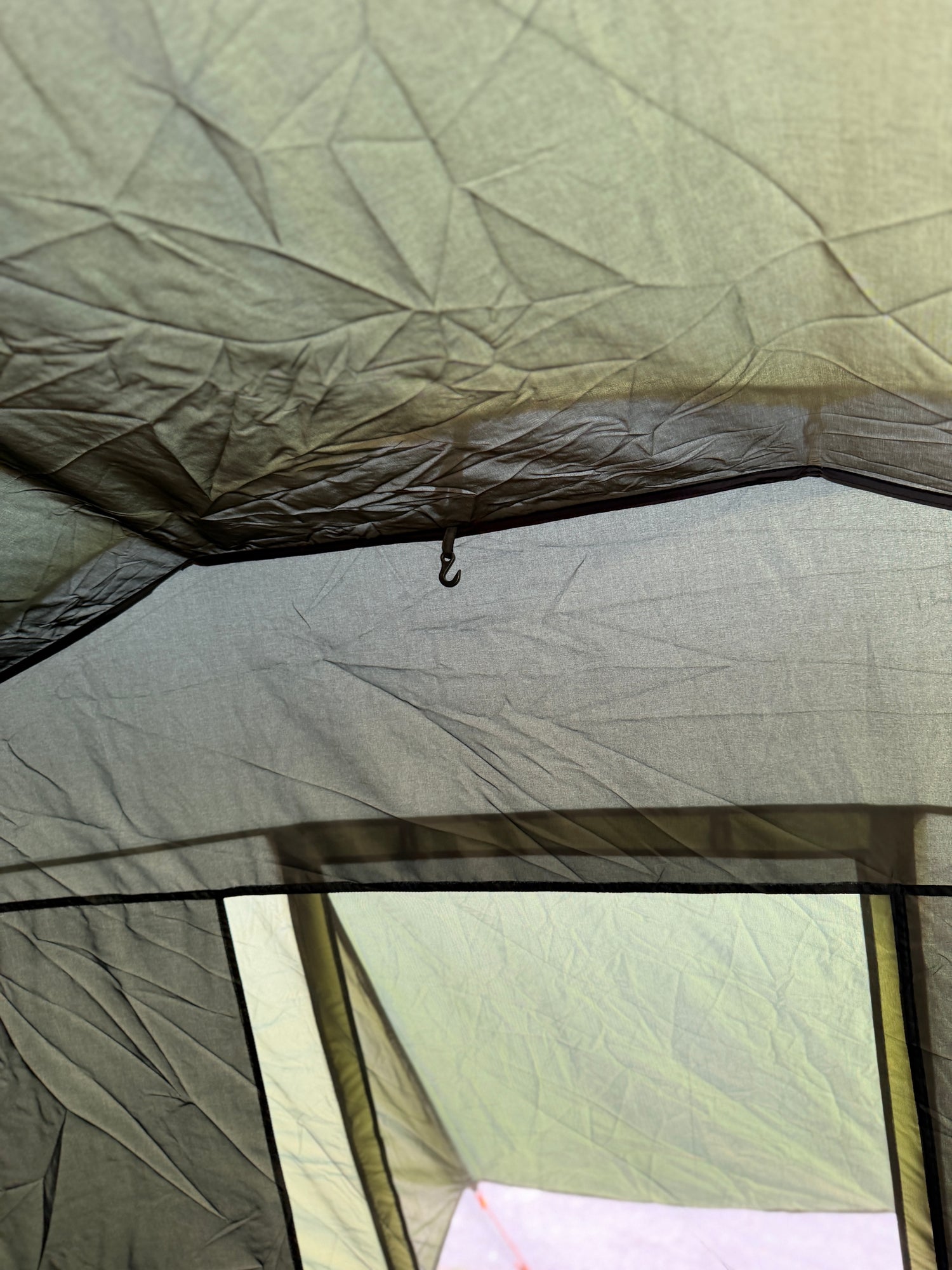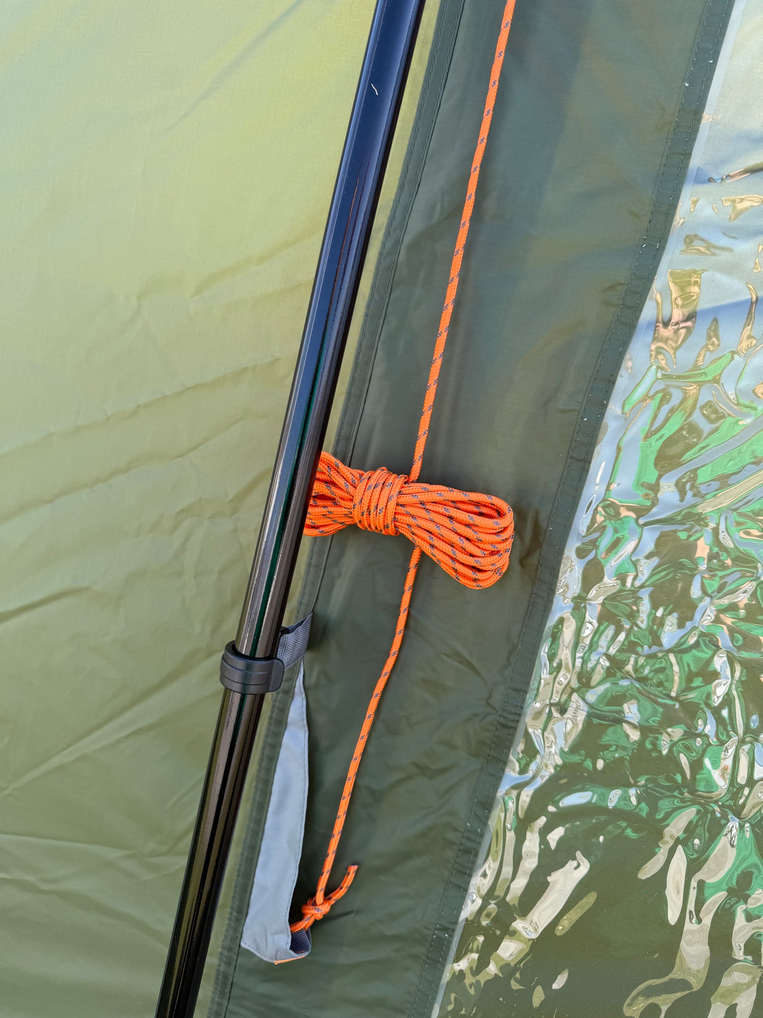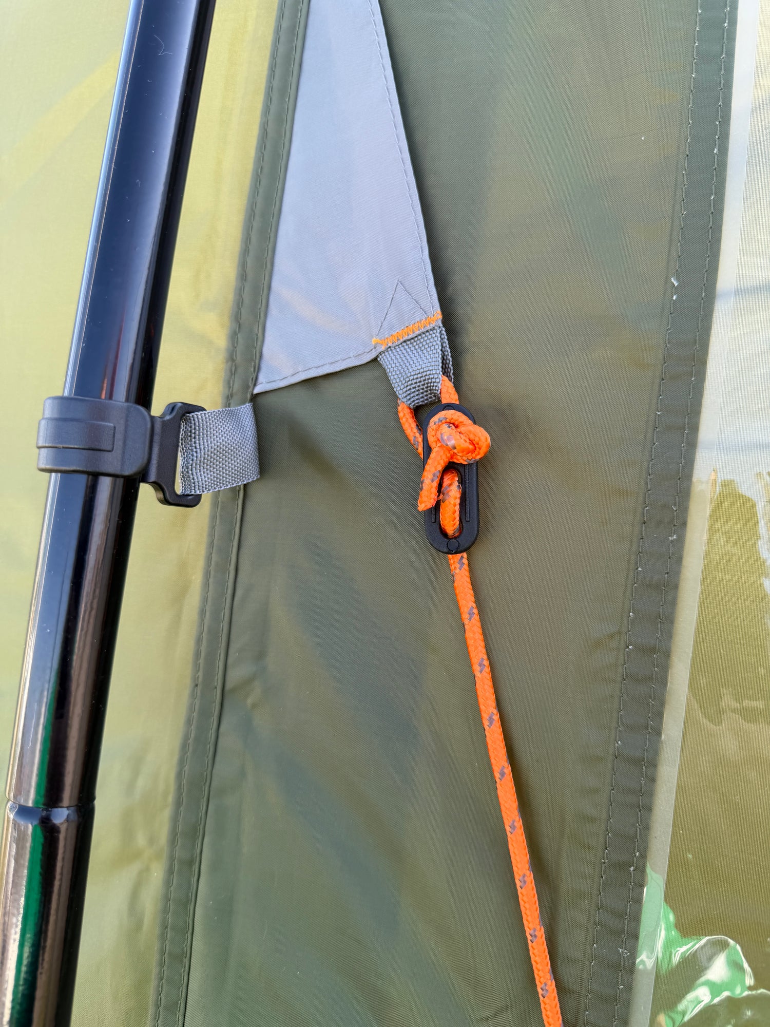 I allrummet finns smarta förvaringsfickor samt upphängningskrokar – två i allrummet och två i sovdelen – vilket gör det enkelt att organisera belysning och utrustning. De flera fönstren släpper in rikligt med ljus och bidrar till en trivsam atmosfär, perfekt för regniga dagar när du vill umgås, spela spel eller äta tillsammans inomhus.
