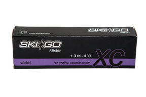 XC Klister Violett är ett tryggt val när snön är kornig eller grov och temperaturen pendlar mellan plus och minus – ett klister som ger säkert grepp utan att kompromissa med glidet.